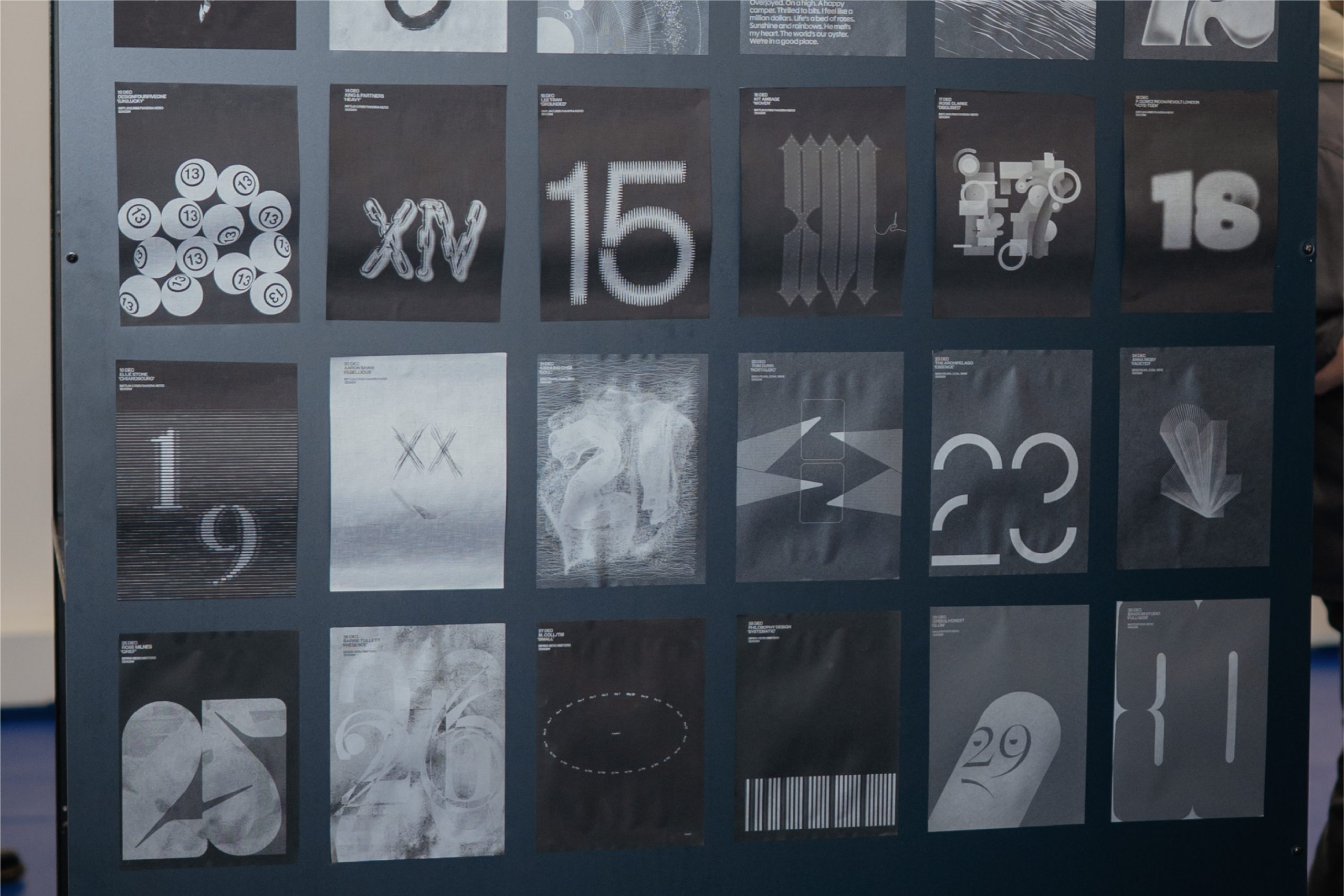 Our contribution was assigned the date “21”. The custom letterforms for 21 draw inspiration from the “21 grams experiment” — the supposed weight of the human soul. Built from dispersed, non-solid strokes rather than a solid block, the form suggests something intangible and weightless, echoing the idea of a presence that can be felt but not fully seen.